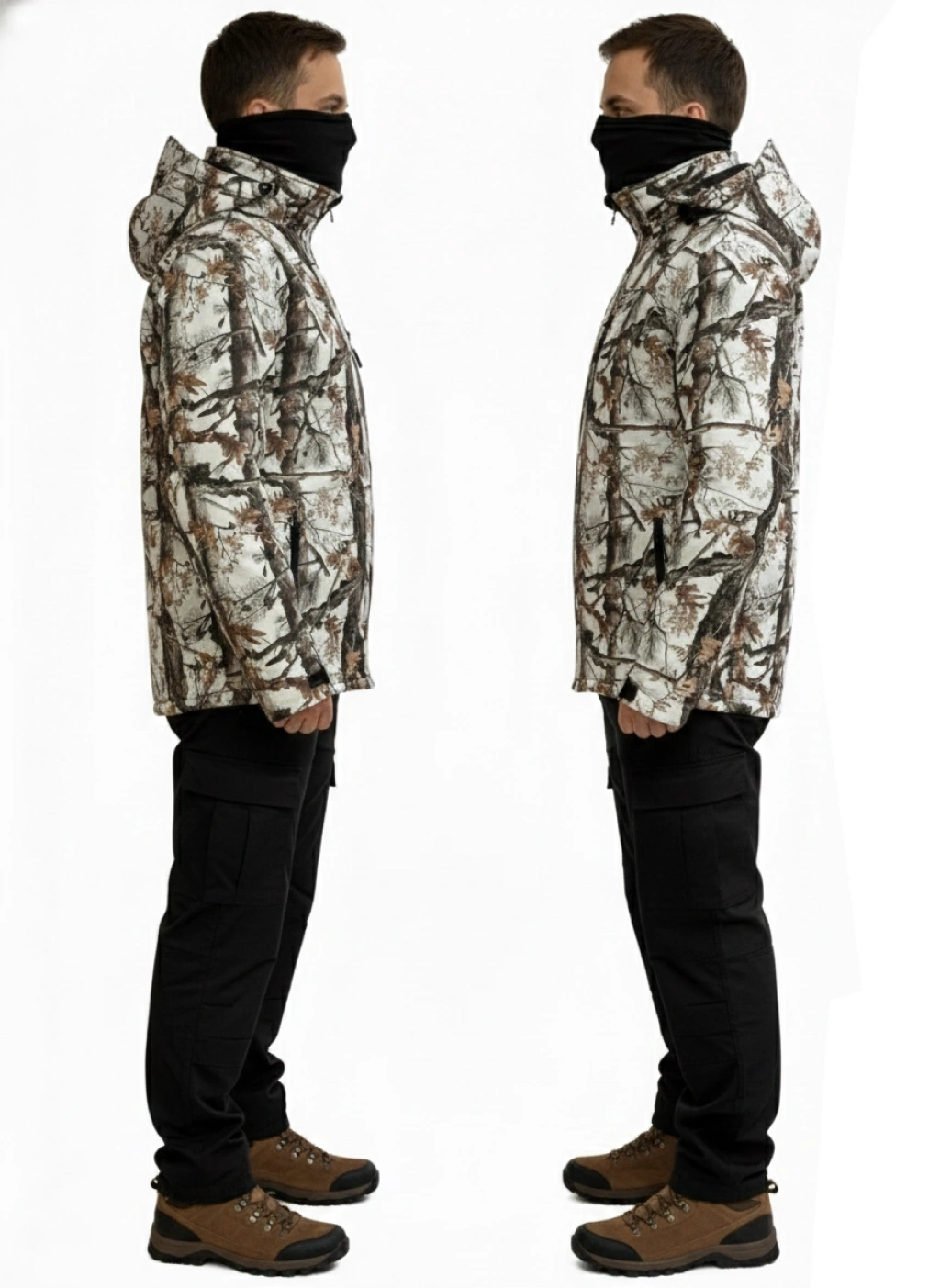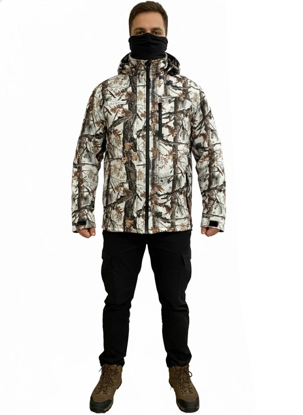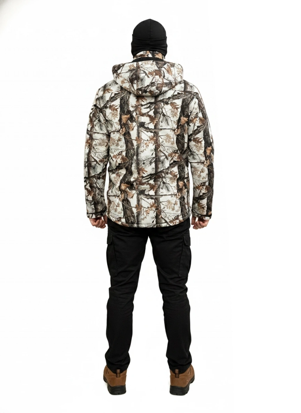 BEYAZ SOFT SHELL MONT AVCI SAZ KAR DESEN ÇİFT KAT POLARLI