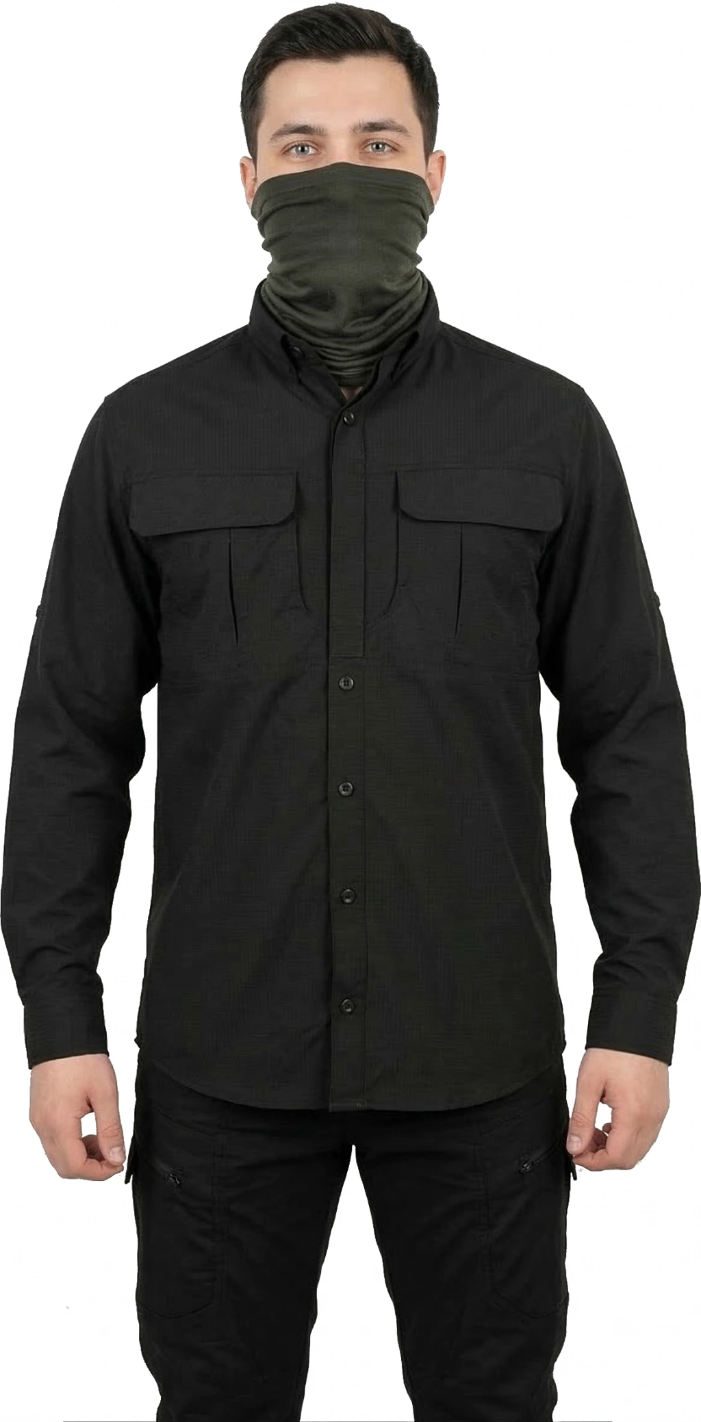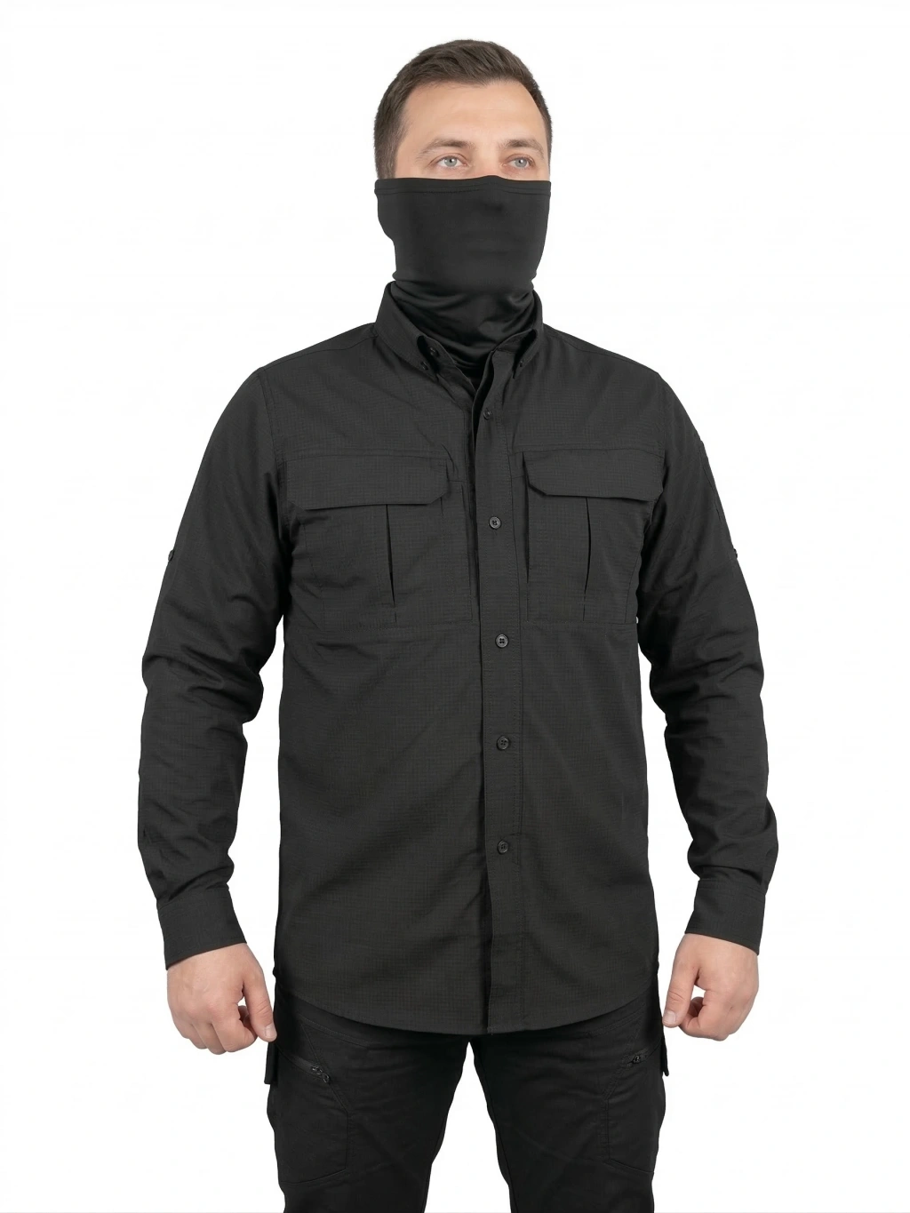 Mysia Outdoor'un siyah trekking gömleği, hem şık hem de fonksiyonel bir tasarıma sahiptir.